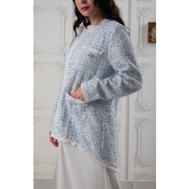 Layered long-sleeve tweed jacket